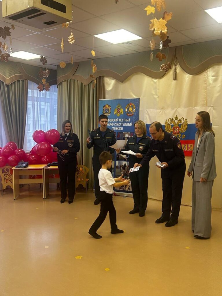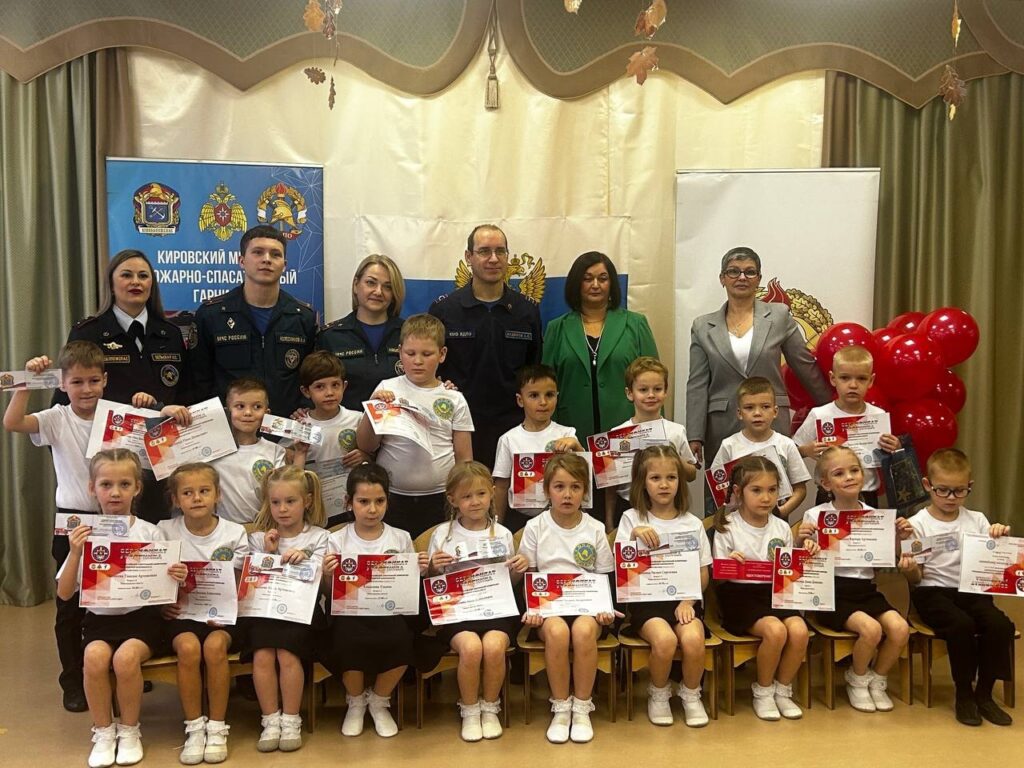 В торжественной обстановке ребятам были вручены удостоверения «Юных пожарных» и памятные подарки. На мероприятии присутствовал заместитель председателя совета Кировского местного отделения Ленинградского областного отделения Общероссийской общественной организации «Всероссийское добровольное пожарное общество» Андрей Худяков.