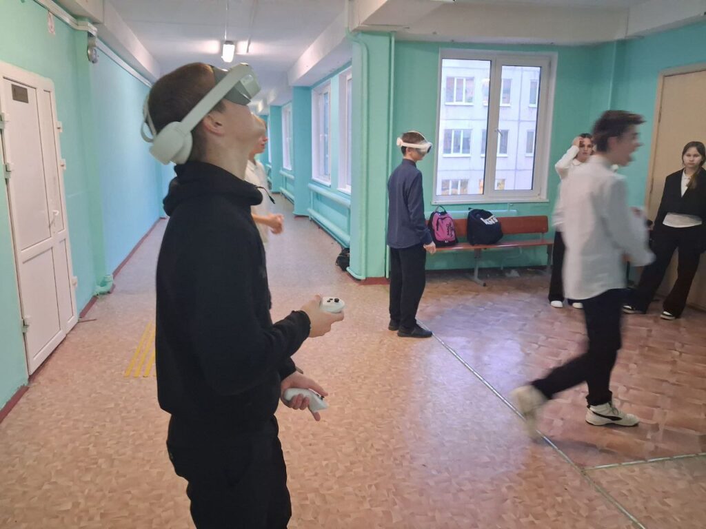 На занятии школьники изучили тему опасности на водоемах и действиям при наводнении и все это в игровой форме с помощью очков виртуальной реальности.
