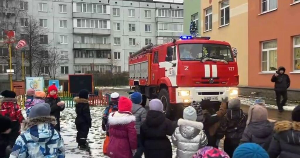 Вместо традиционной елки хоровод водили вокруг пожарной машины.