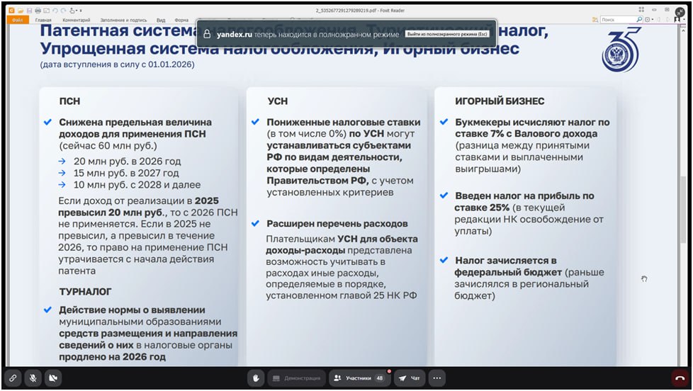 На прошлой неделе председатель совета КМО Ленинградского областного отделения ВДПО принял активное участие в Круглом столе в формате селекторного совещания Комиссии по развитию институтов гражданского общества и некоммерческого сектора, взаимодействию с органами местного самоуправления, общественными палатами муниципальных образований совместно с АНО Ресурсный центр «Фактор» и УФНС России по Ленинградской области на тему: «Изменения в налоговом законодательстве для НКО в 2026 году».